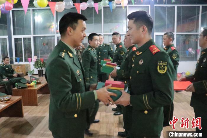 圖為武警第二機(jī)動(dòng)總隊(duì)某支隊(duì)官兵向老兵贈(zèng)送紀(jì)念品。李貴華 攝