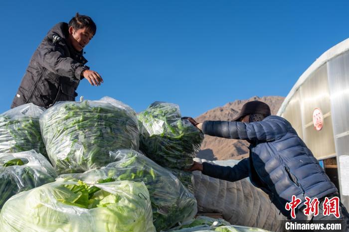 圖為當(dāng)?shù)剞r(nóng)牧民轉(zhuǎn)運(yùn)剛采摘的大棚蔬菜前往日喀則市區(qū)。江飛波 攝