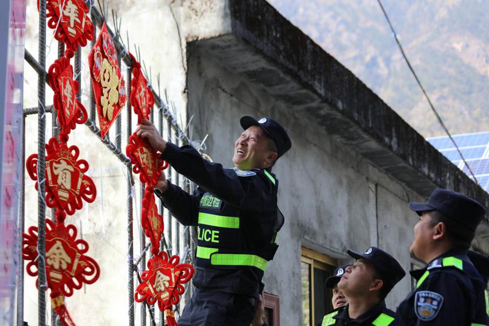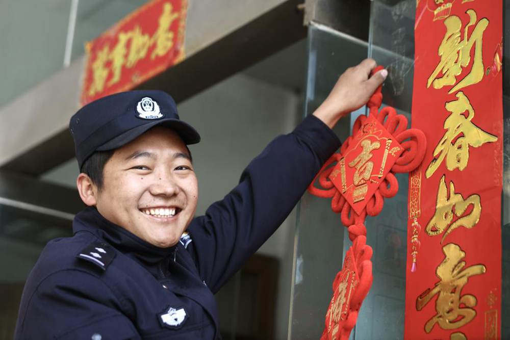 從警20年的老民警掛福字。索朗次仁攝