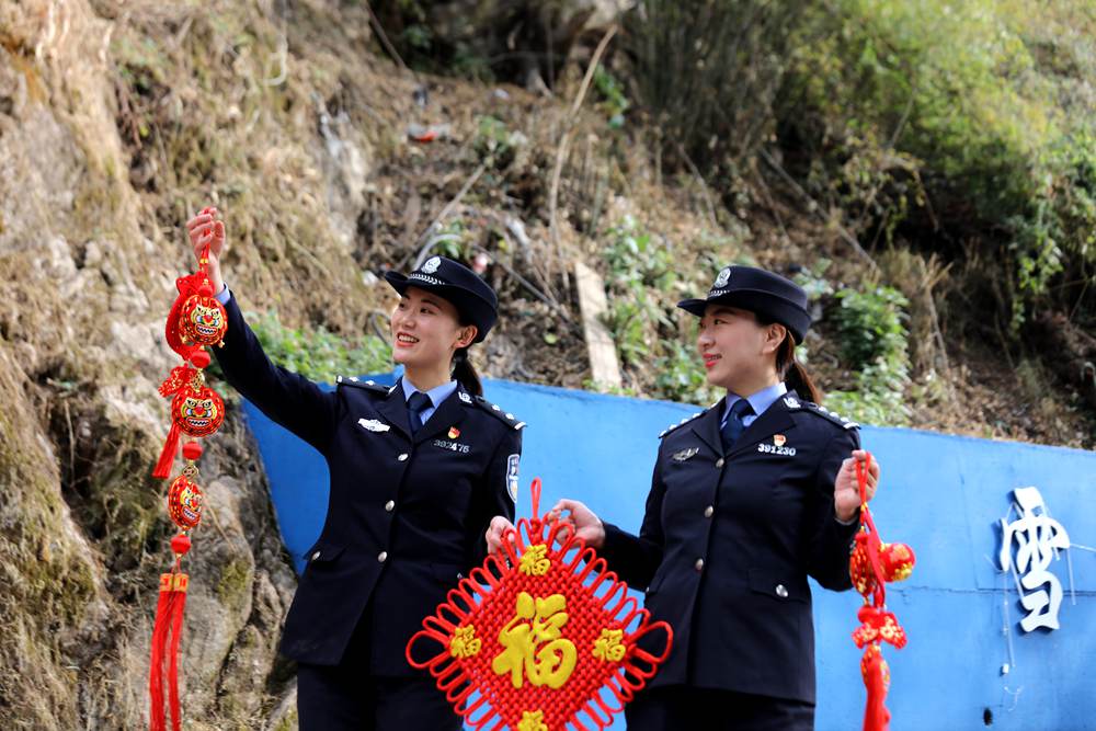 女警察拿著福字準備去裝扮宿舍過年。索朗次仁攝