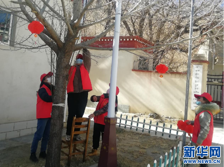 1月28日,志愿者在養(yǎng)老院掛燈籠。(圖片由白朗縣婦女聯(lián)合委員會(huì)提供)
