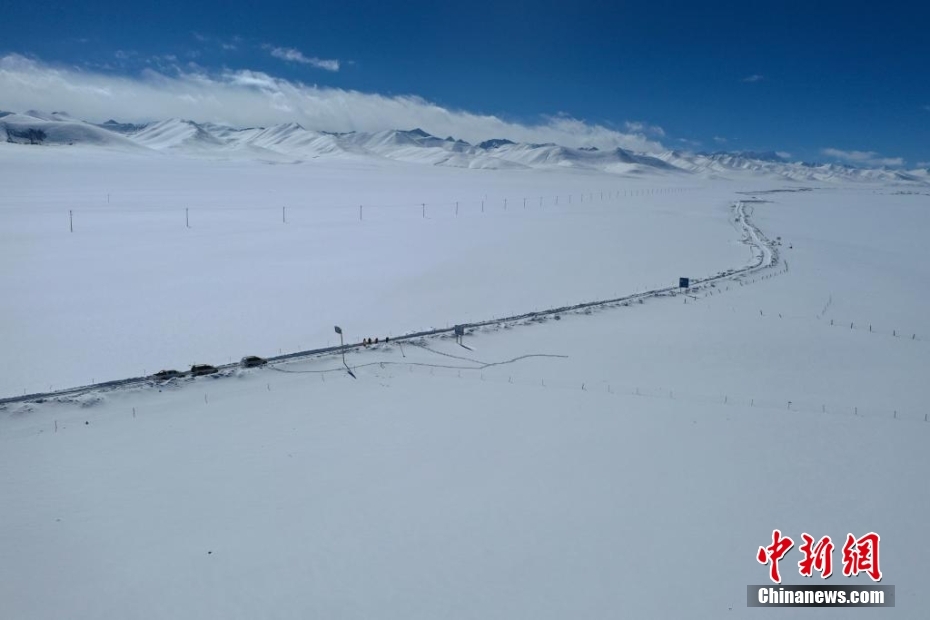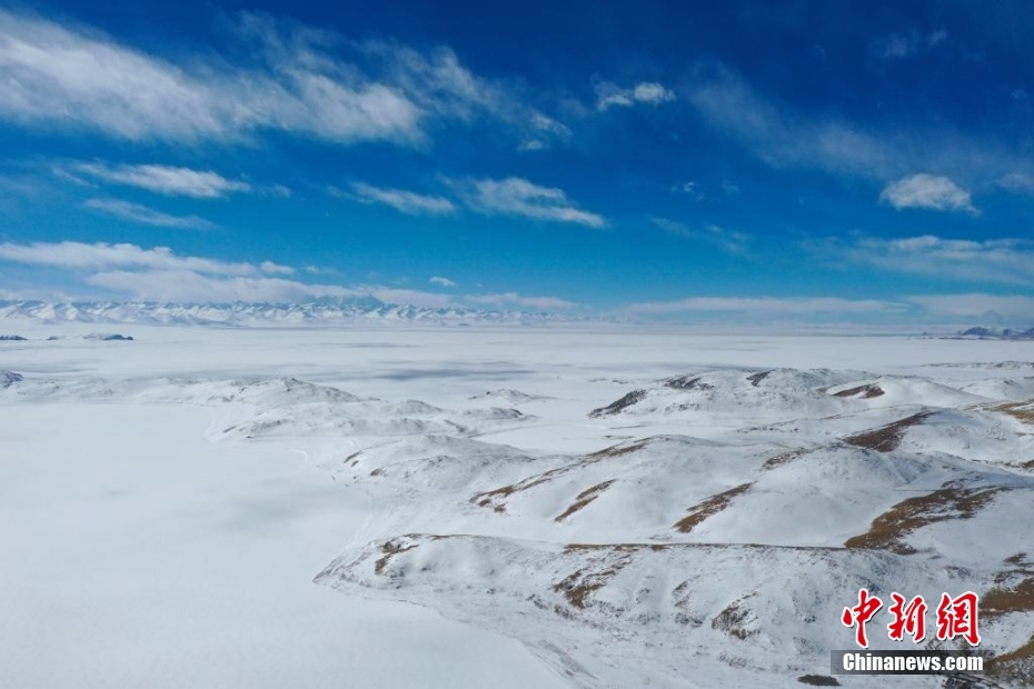 納木錯是西藏三大“圣湖”之一,近日迎來了降雪。藍(lán)色的冰湖與廣闊的牧場都被茫茫白雪覆蓋。遠(yuǎn)處連綿的山峰像極了奶油冰琪凌一般。牧場的欄桿,點綴出了草原的輪廓。貢嘎來松 攝