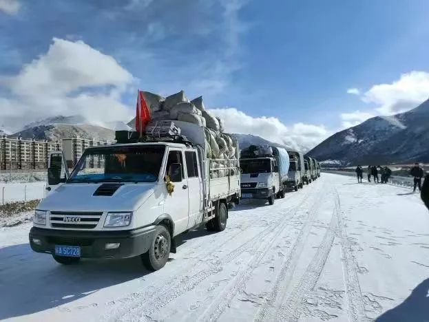 格松達(dá)吉一行經(jīng)驅(qū)車約6個(gè)小時(shí),行程近240公里,7輛救災(zāi)物資運(yùn)輸車安全到達(dá)目的地,兄弟縣鄰近鄉(xiāng)的牧民朋友早已在公路兩側(cè)等候,他們用一條條哈達(dá)、一句句“謝謝”向來自金嶺鄉(xiāng)的友人表達(dá)敬意和感謝。