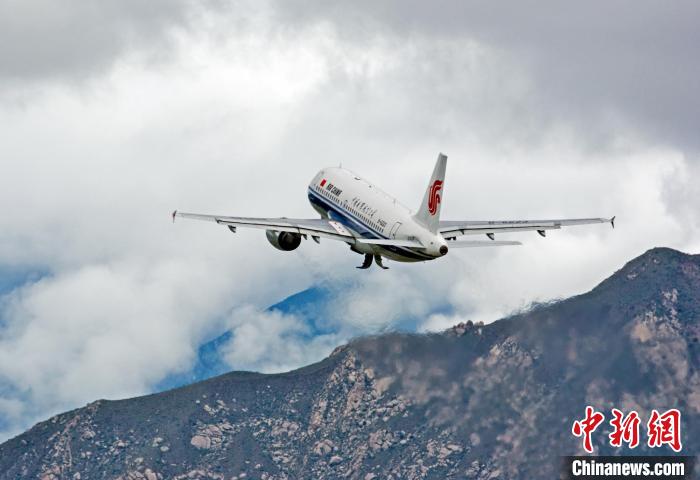 國航西南分公司A319飛機(jī)從拉薩貢嘎國際機(jī)場起飛。國航西南分公司 供圖