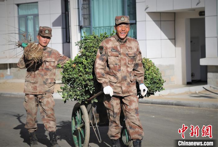 圖為官兵正在種樹。張寅 攝
