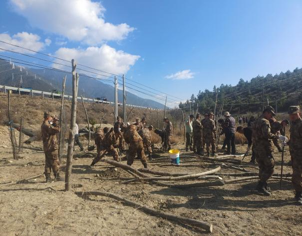 為大力推進(jìn)生態(tài)環(huán)境建設(shè),進(jìn)一步加強(qiáng)民族團(tuán)結(jié)工作,增進(jìn)“軍愛民、民擁軍,軍民團(tuán)結(jié)一家親”的軍民感情。3月12日,米林縣委統(tǒng)戰(zhàn)部派駐羌納鄉(xiāng)崗嘎村工作隊(duì)、崗嘎村“兩委”班子聯(lián)合77215部隊(duì),組織黨員群眾開展“軍地?cái)y手植樹造林 共創(chuàng)綠色和諧家園”主題植樹活動(dòng)。