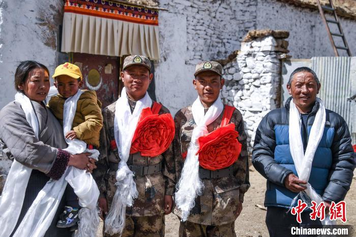 圖為拉薩市林周縣旁多鄉(xiāng)入伍兄弟和家人合影。朱呈 攝