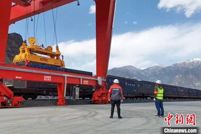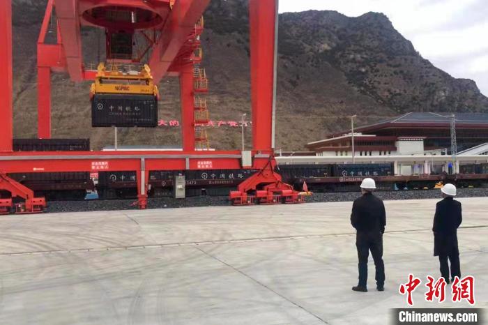 西藏林芝車站貨場對集裝箱進(jìn)行接卸。格桑曲珍 攝