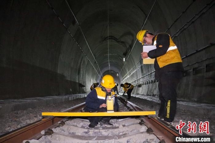 圖為鐵路大型養(yǎng)路機(jī)械搗固車在西藏拉林鐵路隧道內(nèi)。祁國(guó)慶 攝