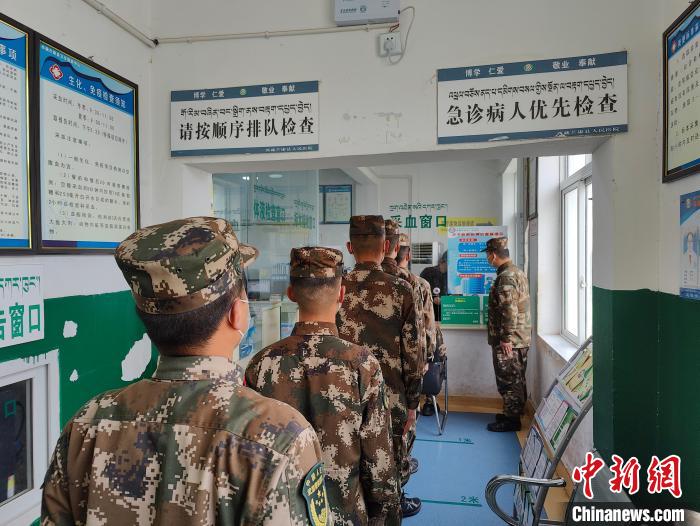 武警第二機(jī)動(dòng)總隊(duì)某支隊(duì)官兵在醫(yī)院排隊(duì)采血。楊寧 攝
