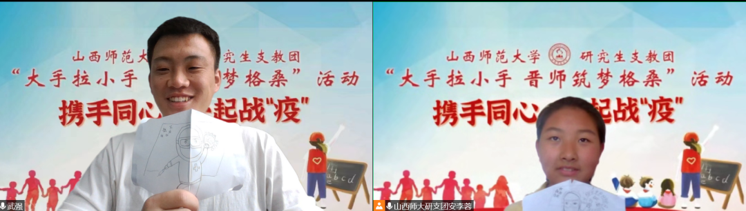 連線中,孩子們主動(dòng)關(guān)心我校志愿者的在校情況,孩子們充滿關(guān)切的眼神讓志愿者們紛紛動(dòng)容。志愿者們也向孩子們?cè)敿?xì)的介紹了防疫自護(hù)知識(shí),結(jié)合視頻、圖片等形式生動(dòng)講述了團(tuán)結(jié)一心、眾志成城的抗疫故事,向所有抗疫英雄們致敬,同時(shí)引導(dǎo)孩子們要深刻認(rèn)識(shí)到作為一名中國(guó)人的幸福,勉勵(lì)孩子們永遠(yuǎn)要團(tuán)結(jié)在一起,共克時(shí)艱,遠(yuǎn)在西藏也要做好防護(hù),一字一句中滿是擔(dān)心和牽掛。隨后,孩子們拿出早已準(zhǔn)備好的工具與志愿者們一同制作了口罩,口罩上寫(xiě)滿了對(duì)哥哥姐姐的關(guān)心、祝福,天真可愛(ài)的臉龐上寫(xiě)滿了戰(zhàn)勝疫情的決心。連線最后,孩子們將精心準(zhǔn)備的才藝表演給志愿者們,是鏗鏘有力的《少年中國(guó)說(shuō)》,是活潑動(dòng)人的《給你一個(gè)擁抱》,是真誠(chéng)溫暖的《聽(tīng)我說(shuō)謝謝你》,或許是那不太流暢的表達(dá)、不太連貫的動(dòng)作,讓遠(yuǎn)隔3700公里的傳遞更加有了溫度,讓兩顆互相牽掛的心靠的更近。