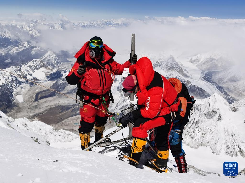 珠峰科考隊(duì)員架設(shè)世界海拔最高的自動(dòng)氣象站。新華社特約記者 索朗多吉 攝