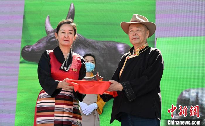 西藏牦牛博物館創(chuàng)館館長、現榮譽館長吳雨初向西藏牦牛博物館捐贈了玉石牦牛雕刻作品。