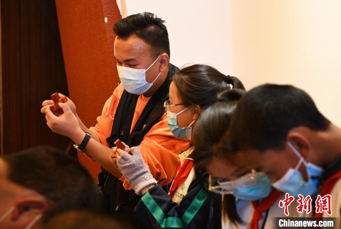 此次展覽的首場講解由拉薩市北京實驗中學學生承擔?;顒舆€邀請了在校學生體驗了古建榫卯組裝、北京古城池拼圖等社教活動。