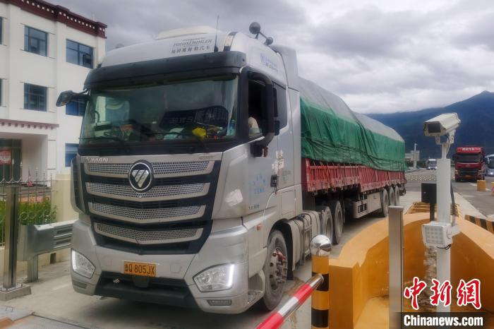圖為貨運(yùn)車輛駛?cè)肓种グ鸵顺迿z測站,符合要求后可在西藏林拉高等級公路上行駛。西藏自治區(qū)交通運(yùn)輸廳 供圖