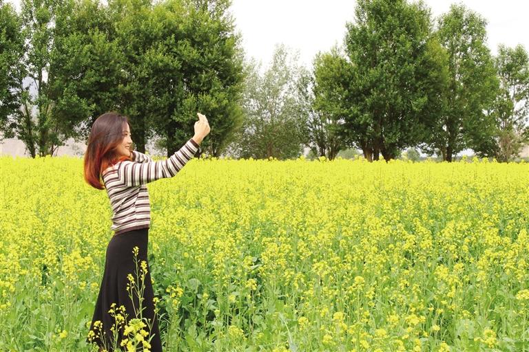 一到達(dá)孜區(qū),便可看到公路兩邊都是油菜花。記者來到塔杰鄉(xiāng)巴嘎雪村的油菜種植地,頓時(shí)被眼前的景色吸引,這里層層疊疊的油菜花海黃綠相映,在陽光的照耀下絢麗奪目,將大地渲染成“金黃海洋”,微風(fēng)吹拂下,黃花綠葉的油菜花搖曳著曼妙身姿,清新婉約,當(dāng)你置身油菜花海中,花香撲面而來,讓人心曠神怡。