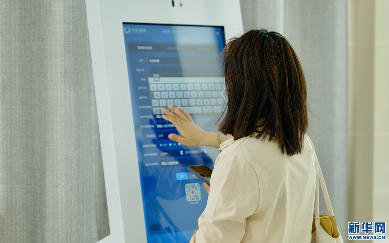 6月24日,應聘者在使用自助查詢機填寫資料。新華網(wǎng) 柑丹鴦琦 攝