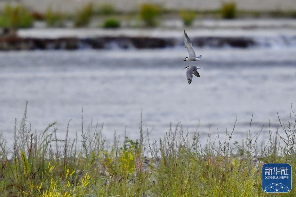 燕鷗在拉薩河上比翼飛翔(6月26日攝)。