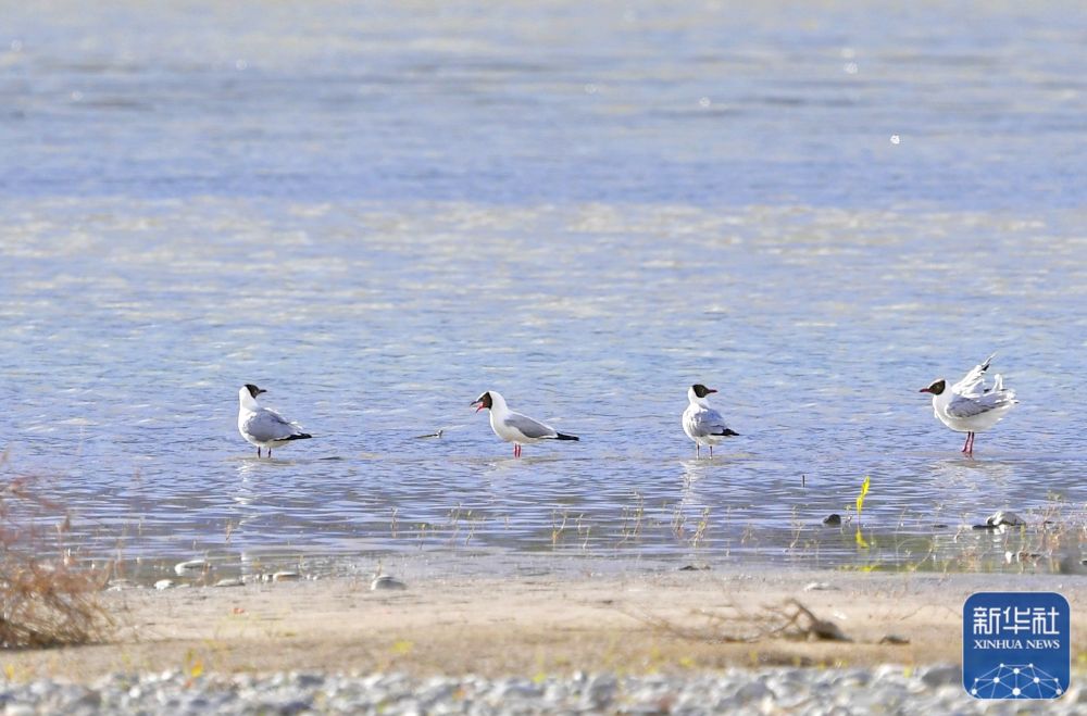 棕頭鷗在拉薩河棲息(6月26日攝)。