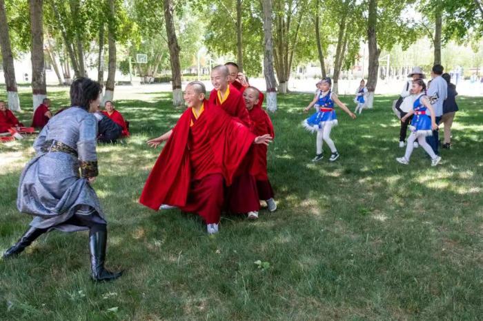 2021 年6 月1 日兒童節(jié),西藏佛學院與拉薩市第一小學舉行聯誼活動,孩子們一起朗誦詩歌、玩游戲等。記者 江飛波 攝