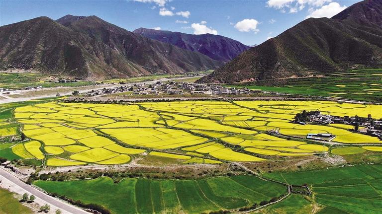 記者了解到,今年墨竹工卡縣種植小油菜3.5萬(wàn)畝,通過(guò)“一桶好油 ”計(jì)劃發(fā)展一、二、三產(chǎn)業(yè)融合,推動(dòng)墨竹小菜籽油的整體發(fā)展,讓百姓享受到發(fā)展小油菜產(chǎn)業(yè)帶來(lái)的經(jīng)濟(jì)成果,切實(shí)做好脫貧攻堅(jiān)和鄉(xiāng)村振興的有效銜接。每逢墨竹工卡縣小油菜花開(kāi)時(shí),金黃的小油菜花和翠綠的青稞相交融,織成了一幅美不勝收的天然畫(huà)卷。