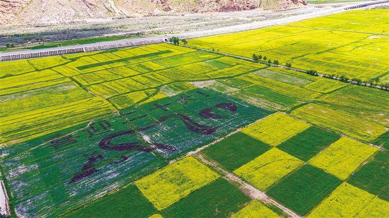 墨竹工卡縣農(nóng)業(yè)農(nóng)村局相關(guān)負(fù)責(zé)人告訴記者,這次的創(chuàng)意油菜花田和往年相比大不相同,為了迎接黨的二十大勝利召開(kāi),他們?nèi)α?00畝地人工種植了專門(mén)引進(jìn)的四種彩色油菜花歷時(shí)兩個(gè)多月它們開(kāi)花啦!看出這是什么圖案了嗎?現(xiàn)在記者給你揭曉(最上面是喜迎二十大字,字下中間是哈達(dá)、左邊是代表松贊干布和文成公主,右邊是愛(ài)心)。怎么樣,大家看出來(lái)了嗎?現(xiàn)在扎西崗村的創(chuàng)意油菜花都開(kāi)了,從現(xiàn)在開(kāi)始到接下來(lái)的半個(gè)月都是賞花期,一起去打卡墨竹工卡縣鄉(xiāng)村觀賞小油菜花的勝地吧,喜歡攝影的朋友更不能錯(cuò)過(guò)哦!