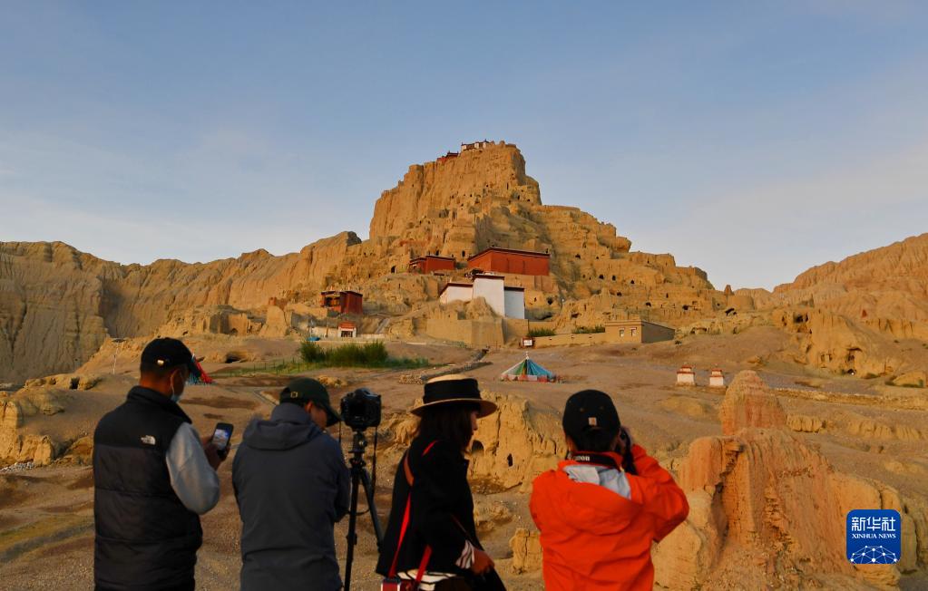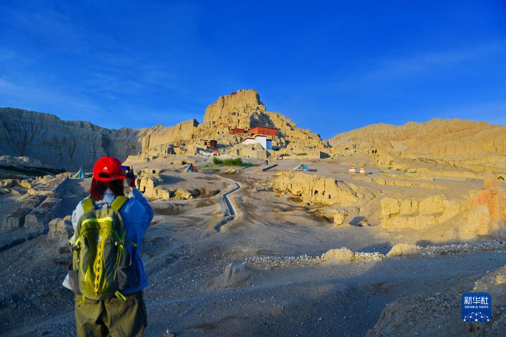 8月3日,游客在西藏札達(dá)縣拍攝古格王國遺址。新華社記者 張汝鋒 攝
