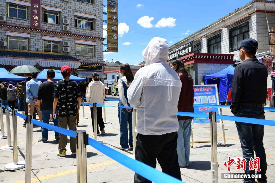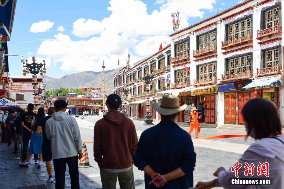 8月9日,西藏拉薩,市民在城關(guān)區(qū)八廓街道的核酸檢測現(xiàn)場排隊進行核酸檢測。當(dāng)前,西藏拉薩市設(shè)置545個核酸檢測點開展全員核酸檢測。 中新社記者 貢嘎來松 攝