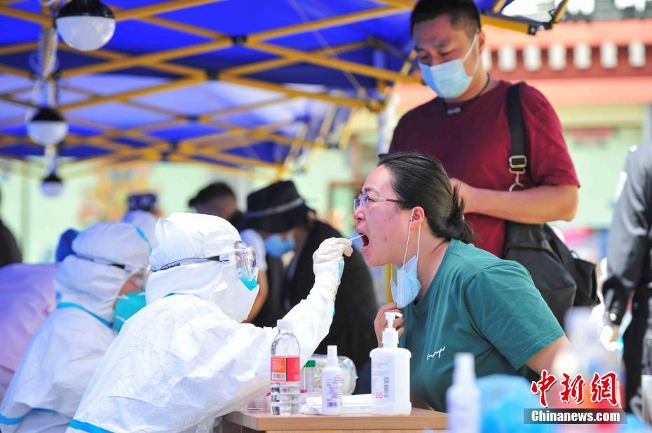 8月9日,西藏拉薩,市民在城關(guān)區(qū)八廓街道魯固社區(qū)的核酸檢測現(xiàn)場進行核酸檢測。當(dāng)前,西藏拉薩市設(shè)置545個核酸檢測點開展全員核酸檢測。 中新社記者 貢嘎來松 攝