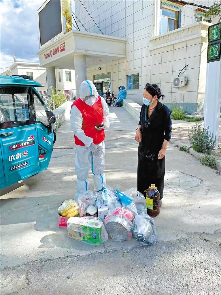 圖為白朗縣下沉黨員在為群眾配送物資。 本報記者 次仁片多 攝