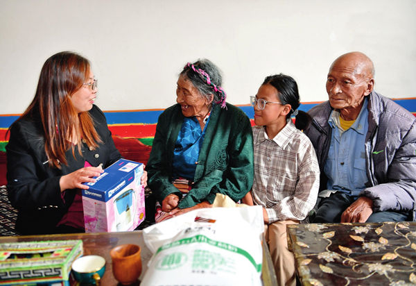 入戶走訪的過程中,王玉秀收獲了許多藏族老百姓的信任和喜愛。援藏結(jié)束前,她專門去看望在日喀則市謝通門縣初村結(jié)識(shí)的次仁和格桑桑珠,還為他們留下生活用品和現(xiàn)金。臨別時(shí),次仁感動(dòng)地說:“能有這么一位‘親戚’,我們真的很高興。”