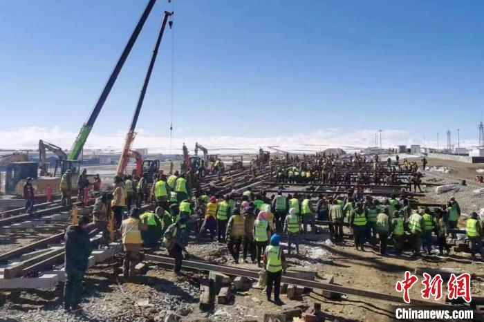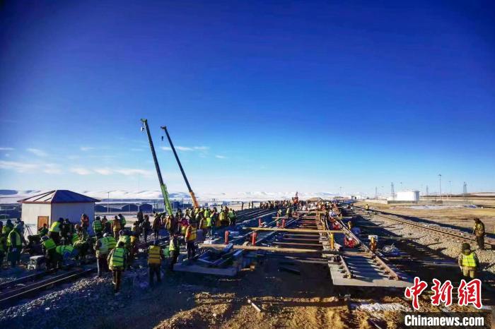 圖為海拔4500多米那曲車站道岔更換及信號(hào)系統(tǒng)改造施工現(xiàn)場(chǎng)。 國(guó)鐵青藏集團(tuán)有限公司 供圖