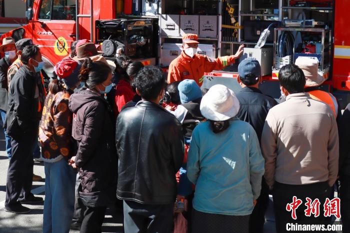 活動(dòng)現(xiàn)場(chǎng),消防員向民眾講解裝備操作?!≡卤?攝