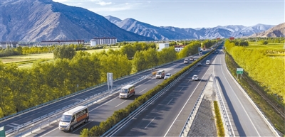 這是一次遠(yuǎn)行。從幫愛鄉(xiāng)到距離拉薩不遠(yuǎn)的森布日安置點(diǎn),路程超過500公里。剛出幫愛鄉(xiāng),因?yàn)閮鐾羶鋈?,路面顛簸。開出三四個小時后,車輛駛?cè)肴ツ陝偼ㄜ嚨母咚俟?,路途平坦舒適起來。