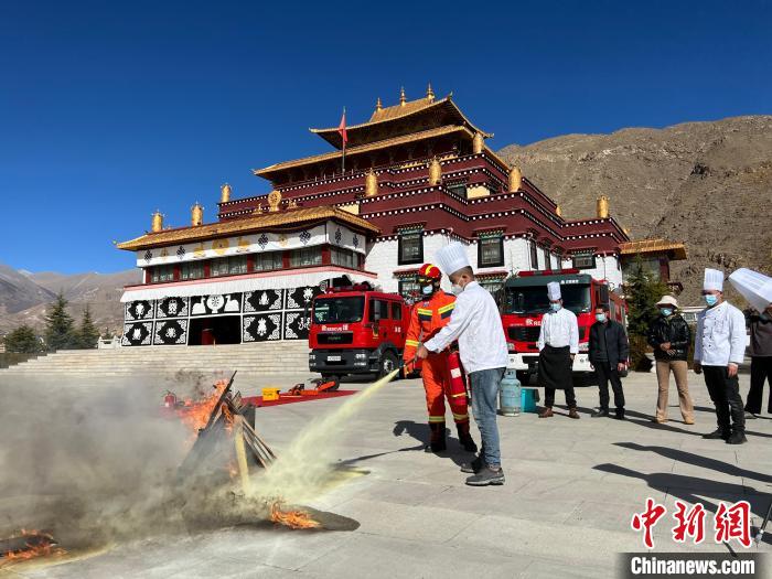圖為西藏佛學(xué)院消防救援大隊(duì)開展消防演練培訓(xùn)。 拉薩市消防救援支隊(duì)供圖