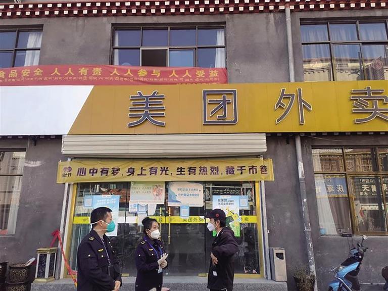 拉薩市市場監(jiān)管局對美團拉薩分公司進行現(xiàn)場指導。圖由 拉薩市市場監(jiān)管局 提供