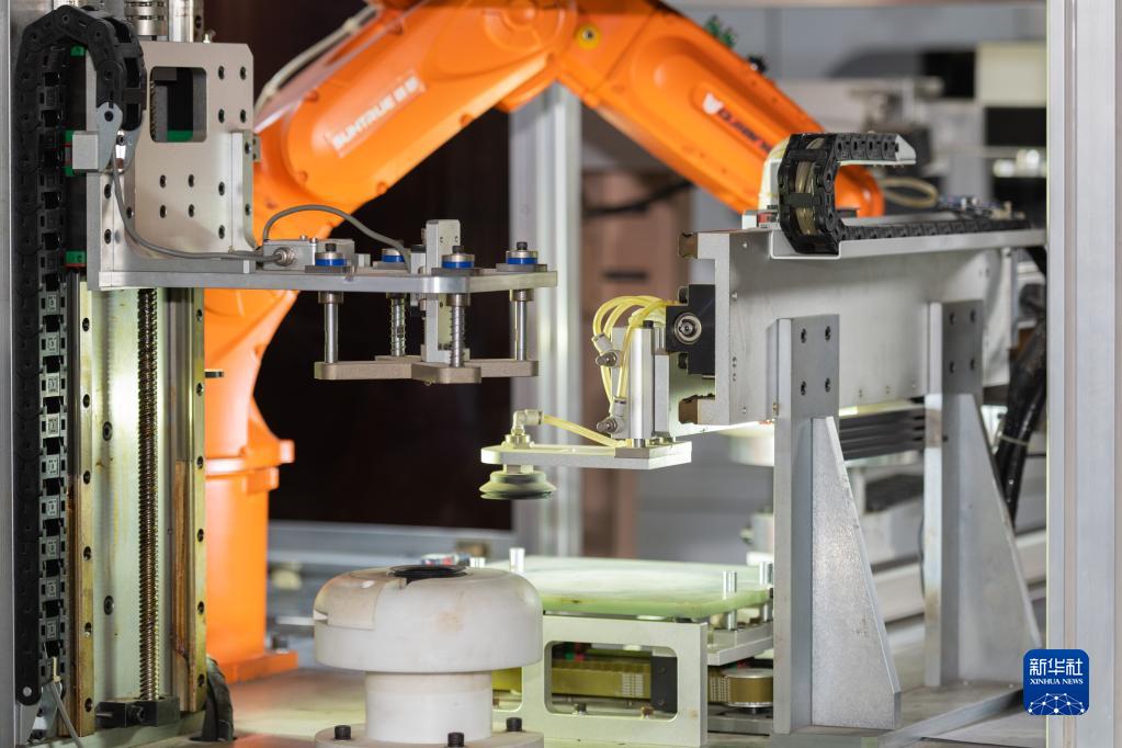 這是11月27日在拉薩市一家工廠內(nèi)拍攝的高原地區(qū)多功能烹飪炊具不粘鍋產(chǎn)品全機械自動化生產(chǎn)線的設備。新華社記者 黃耀漫 攝