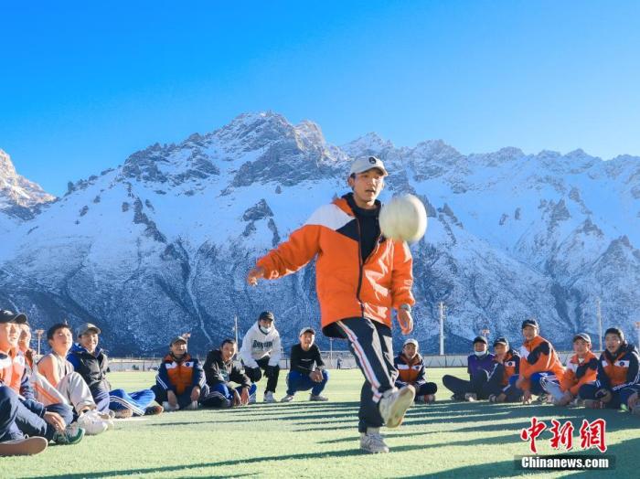 圖為11月25日,西藏那曲市嘉黎縣中學(xué)學(xué)生們在“雪山下的夢幻足球場”上進(jìn)行足球訓(xùn)練。中新社記者 貢嘎來松 攝
