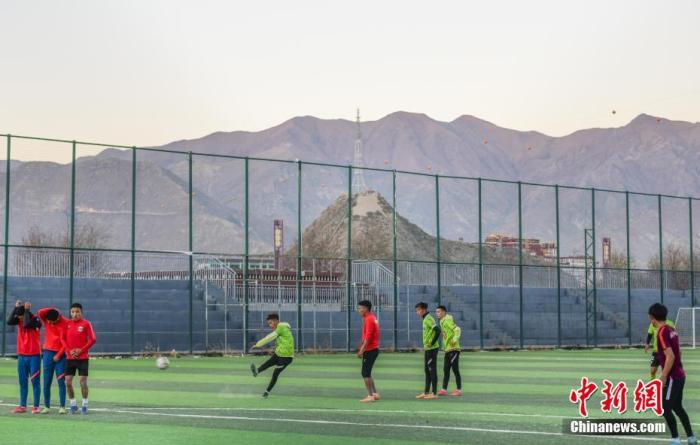 圖為12月12日,拉薩市城關(guān)區(qū)仙足島室外足球場里,市民正在踢球。中新社記者 貢嘎來松 攝