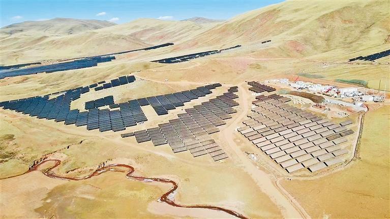 日前,昌都市保供重點項目江達索日光伏電站并網(wǎng)發(fā)電。該項目位于海拔4000米的昌都市江達縣青泥洞鄉(xiāng)索日村,年均發(fā)電量8800萬千瓦時,每年節(jié)約標煤2.68萬噸,可有效緩解當?shù)囟居秒姼叻迤陔娏θ笨?,為群眾生產(chǎn)生活和昌都市經(jīng)濟社會發(fā)展提供安全清潔的電力保障。 圖為索日光伏電站一角(無人機照片)。通訊員 邱云 記者 李梅英 攝