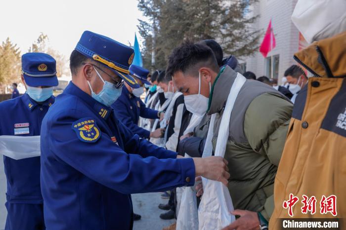 為新入營消防員獻(xiàn)上迎接哈達(dá)?!『罱? 攝