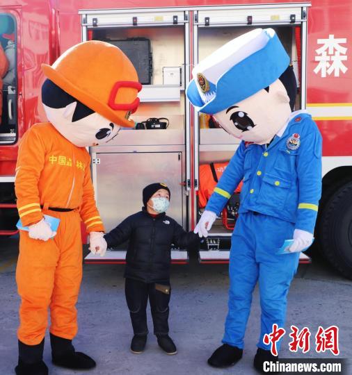 森林消防隊(duì)員組織小朋友體驗(yàn)消防車?!×种ナ猩窒拦﹫D