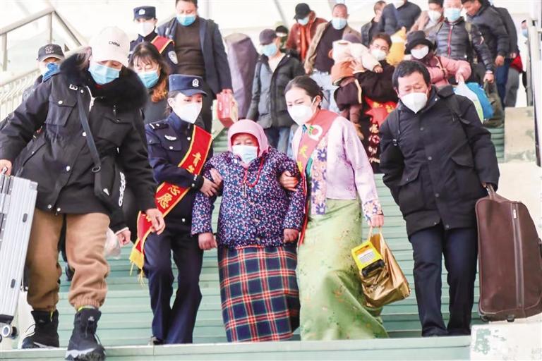 為做好春運工作,拉薩火車站團委“天路格?;ㄇ嗄曛驹刚叻贞牎闭絾印盁嵝姆沾哼\路 愛心志愿暖冬行”行動。 1月7日起至2月中旬,旅客可以在拉薩火車站進出站口、候車大廳等場所看到一抹青春“志愿藍”。山南火車站、林芝火車站也可以看到穿戴“天路格?;ㄖ驹刚摺本R帶的鐵路工作者。本次暖冬行動為期40天,每天共計有20余名志愿者參與活動,來自“天路格桑花青年志愿者服務隊”的鐵路青年志愿者將和地方志愿者一起為進藏、出藏旅客提供引導咨詢、愛心幫扶等服務,用最溫暖、最燦爛的笑容、最便捷暖心的服務舉措保障每位旅客便捷出行。