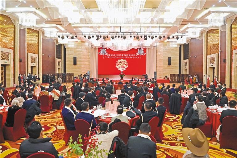 1月17日下午,西藏自治區(qū)2023年春節(jié)、藏歷新年團拜會在拉薩舉行,自治區(qū)黨政軍領(lǐng)導(dǎo)與各族各界人士歡聚一堂。 旦增西旦 攝