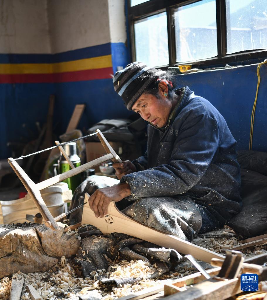 索朗瓊拉的大兒子在制作扎念琴(1月19日攝)。新華社記者 晉美多吉 攝