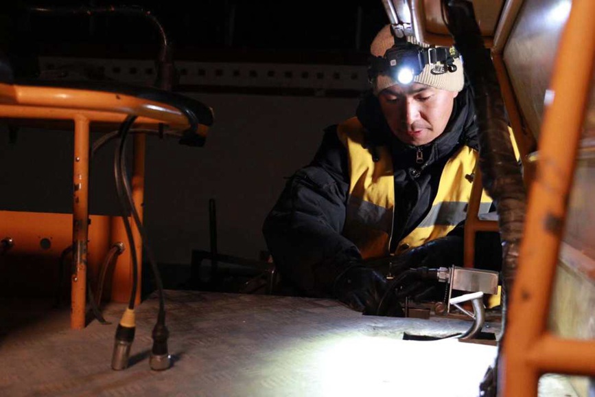 經(jīng)過3個小時的連續(xù)檢查,零時50分,20公里的探傷作業(yè)全部完成。職工們準時到達下道地點,開始進行探傷數(shù)據(jù)的下載、上傳,緊接著,他們又各司其職,開始對探傷儀進行拆解,幾分鐘前還在線路上“嗡嗡嗡”不停探傷檢查的“迷你敞篷車”,很快成為一堆形態(tài)各異的零部件,職工格桑群培開始仔細清點拆卸下來的部件和工具材料,確認無遺留后,他鎖上通道門,大家準備乘車返回工區(qū)。