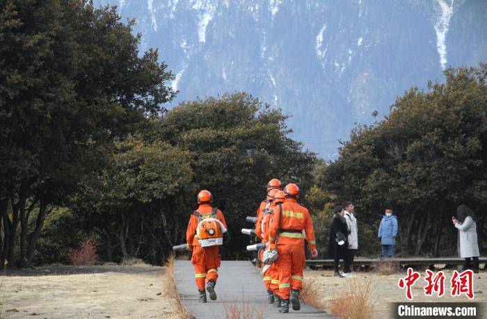 圖為森林消防員在景區(qū)重點(diǎn)區(qū)域普及防火知識(shí)。 林芝市森林消防供圖
