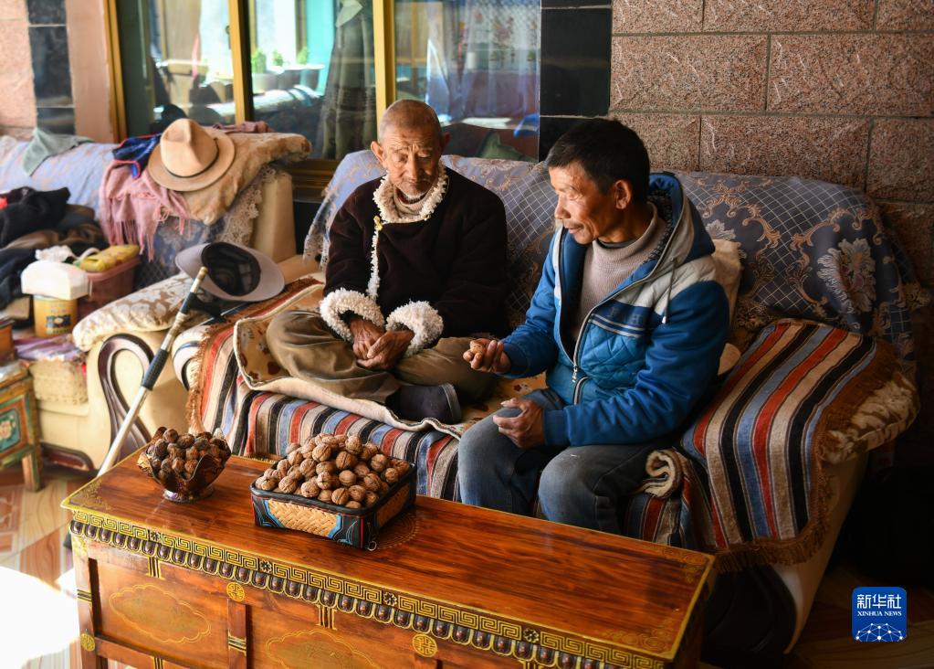 山南市加查縣拉崗村村民在核桃樹下聊天拉家常(2月1日攝)。新華社記者晉美多吉 攝