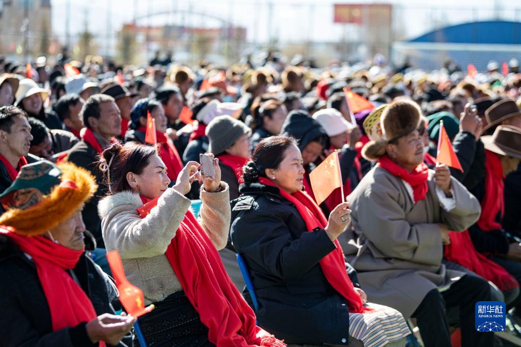 2月19日,人們?cè)谖鞑乩_市堆龍德慶區(qū)濱河體育公園觀看文藝演出。新華社記者 孫非 攝