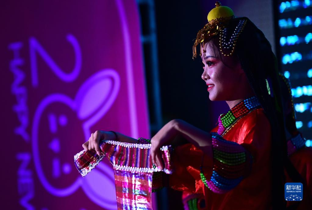 2月21日,學(xué)生在西安市浐灞第一中學(xué)舉行的藏歷新年團(tuán)拜活動上表演藏族舞蹈。新華社記者 李一博 攝